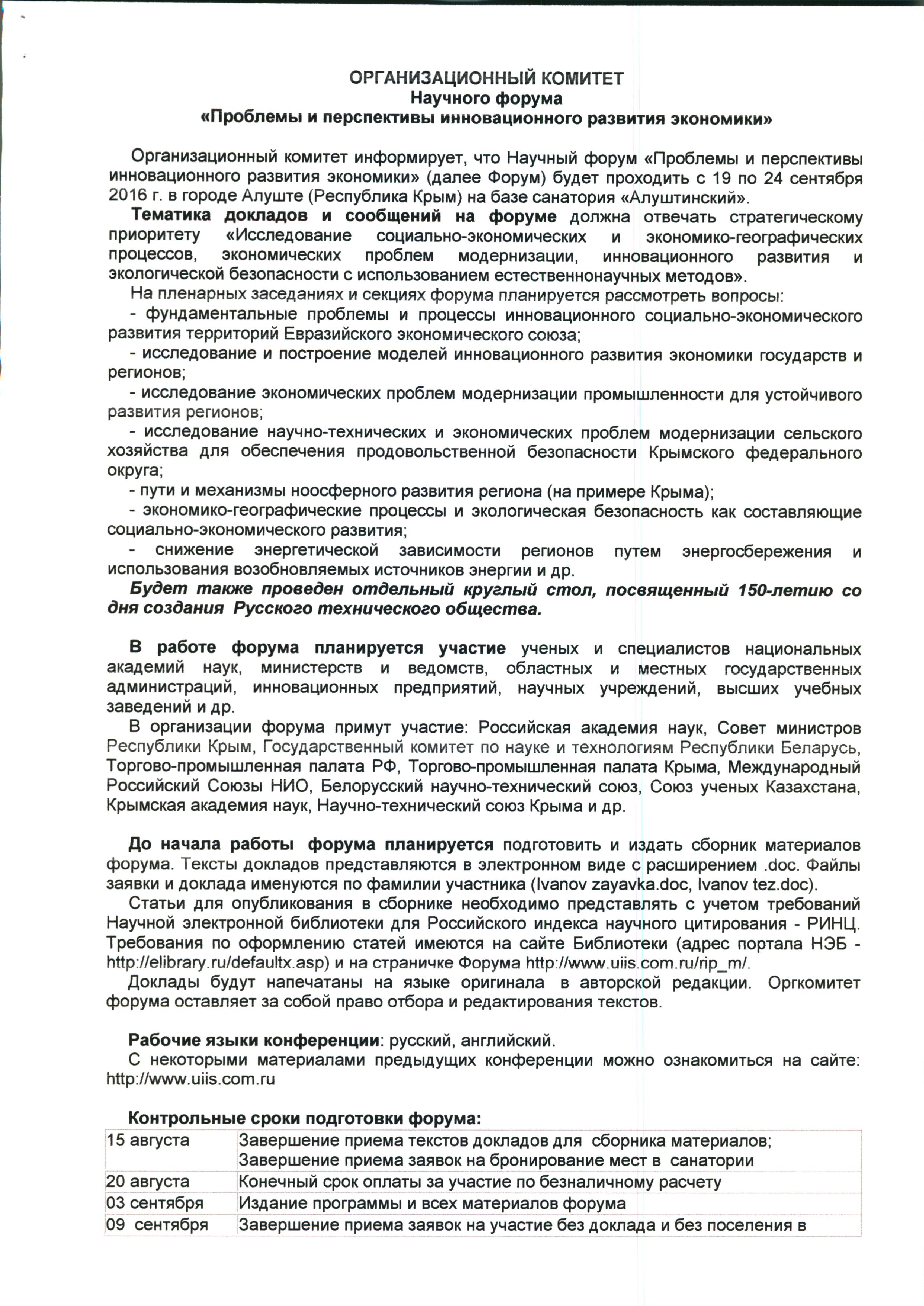 Заявки и все материалы, связанные с изданием сборника, формированием программы форума, круглых столов и секций, бронированием мест в санатории необходимо направлять заместителю председателя Оргкомитета форума Слепокурову Александру Семеновичу на электроный адрес: e-mail: slepokurov_al@mail.ru, телефоны для справок +7(978) 751 87 14, +7 (978) 751 87 34.