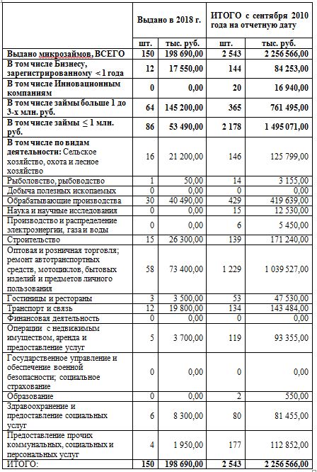 Отчет Микрокредитной компании Новосибирский областной фонд микрофинансирования субъектов малого и среднего предпринимательства за II кв. 2018 г.