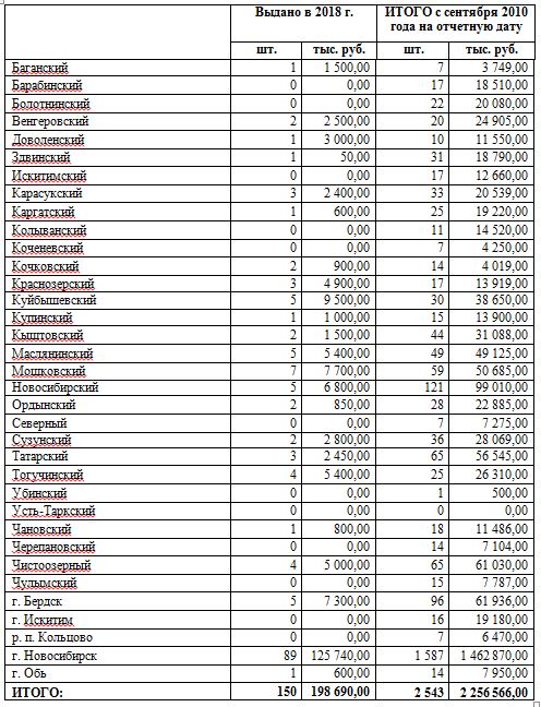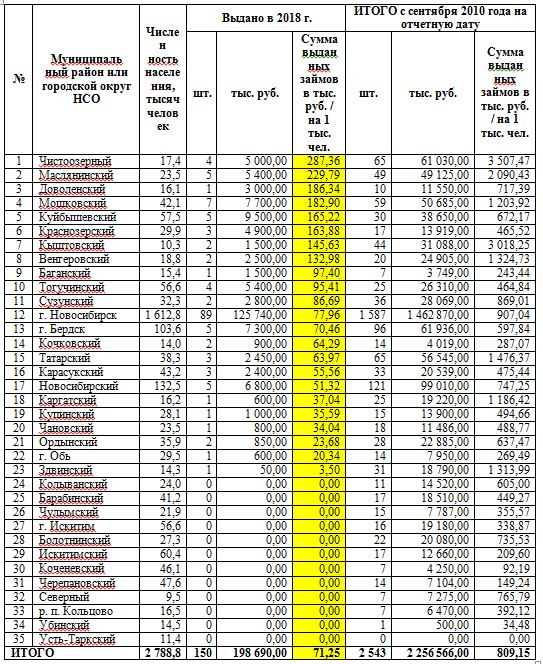 ИНФОРМАЦИЯ о работе Новосибирского областного фонда микрофинансирования субъектов малого и среднего предпринимательства по видам деятельности по состоянию на 01.07.2018: